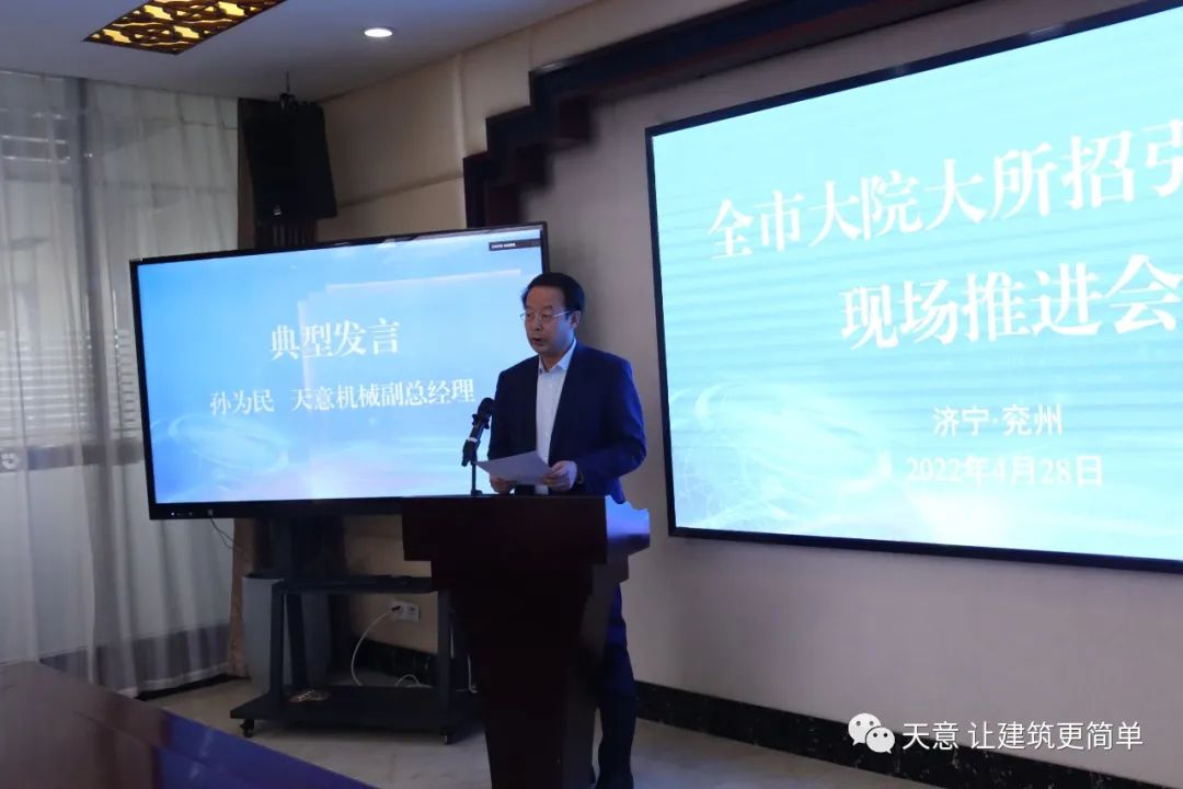 為落實《市政府工作報告》有關(guān)大院大所招引工作要求,推動大院大所招引工作快速開展,4月28日在兗州區(qū)召開大院大所招引工作現(xiàn)場會。市科技局黨組副書記、三級調(diào)研員徐西勝,市科技局副局長侯佳佳及十二縣市區(qū)科技分管領(lǐng)導一行蒞臨天意機械觀摩指導,深入了解天意機械發(fā)展建設(shè)情況,進一步強化服務(wù)保障,加快落地見效,以更大力度統(tǒng)籌推進經(jīng)濟社會發(fā)展。兗州區(qū)副區(qū)長崔增力、天意機械副總經(jīng)理孫為民陪同觀摩。