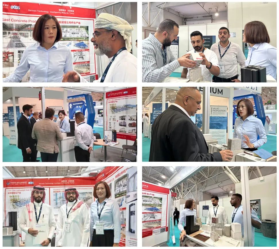 2023年沙特建筑建材及基礎設施展于9月11日在利雅得前沿展覽中心盛大舉辦,來自沙特阿拉伯、中國、德國、意大利、新加坡等國家的200多家公司參展,天意機械攜裝配式建筑裝備(墻板裝備、PC裝備、ALC裝備、涂裝板裝備)系列產(chǎn)品亮相展會。