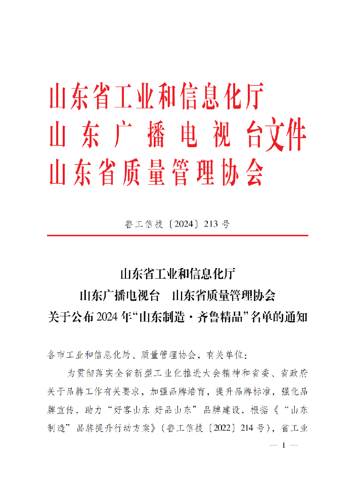 喜報丨天意機械裝配式建筑智能裝備榮獲2024年“山東制造·齊魯精品”