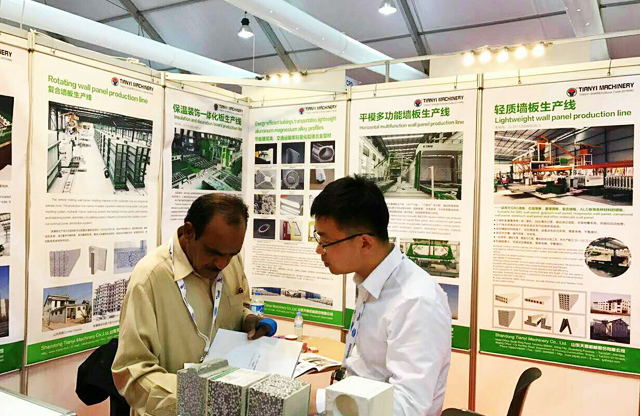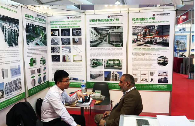 作為中國裝配式裝配品牌代表之一,天意亮相2017年沙特吉達五大行業(yè)展覽會。主要參展產(chǎn)品有預制混凝土PC生產(chǎn)線、保溫裝飾一體化板生產(chǎn)線、輕質墻板生產(chǎn)線等產(chǎn)品。亮相首日,即吸引了大批客商前來觀摩了解,天意國際貿(mào)易部銷售經(jīng)理詳細為來訪客戶人介紹天意裝備在建筑領域應用優(yōu)勢以及成本分析。